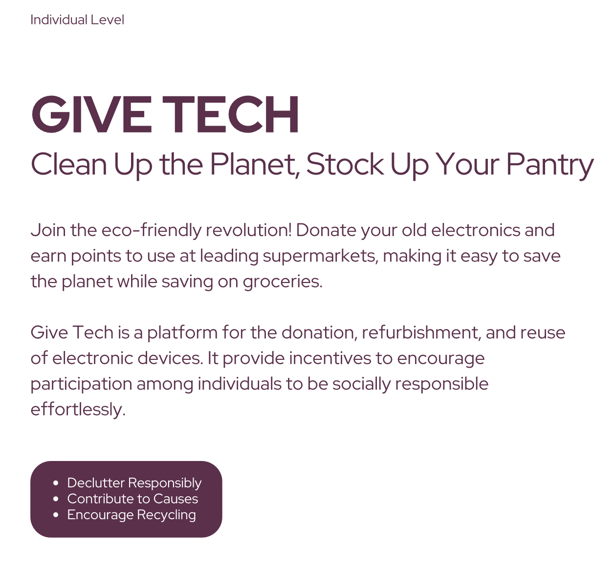 Give-Tech — a service promoting device donation, refurbishment, and reuse with tangible user rewards.