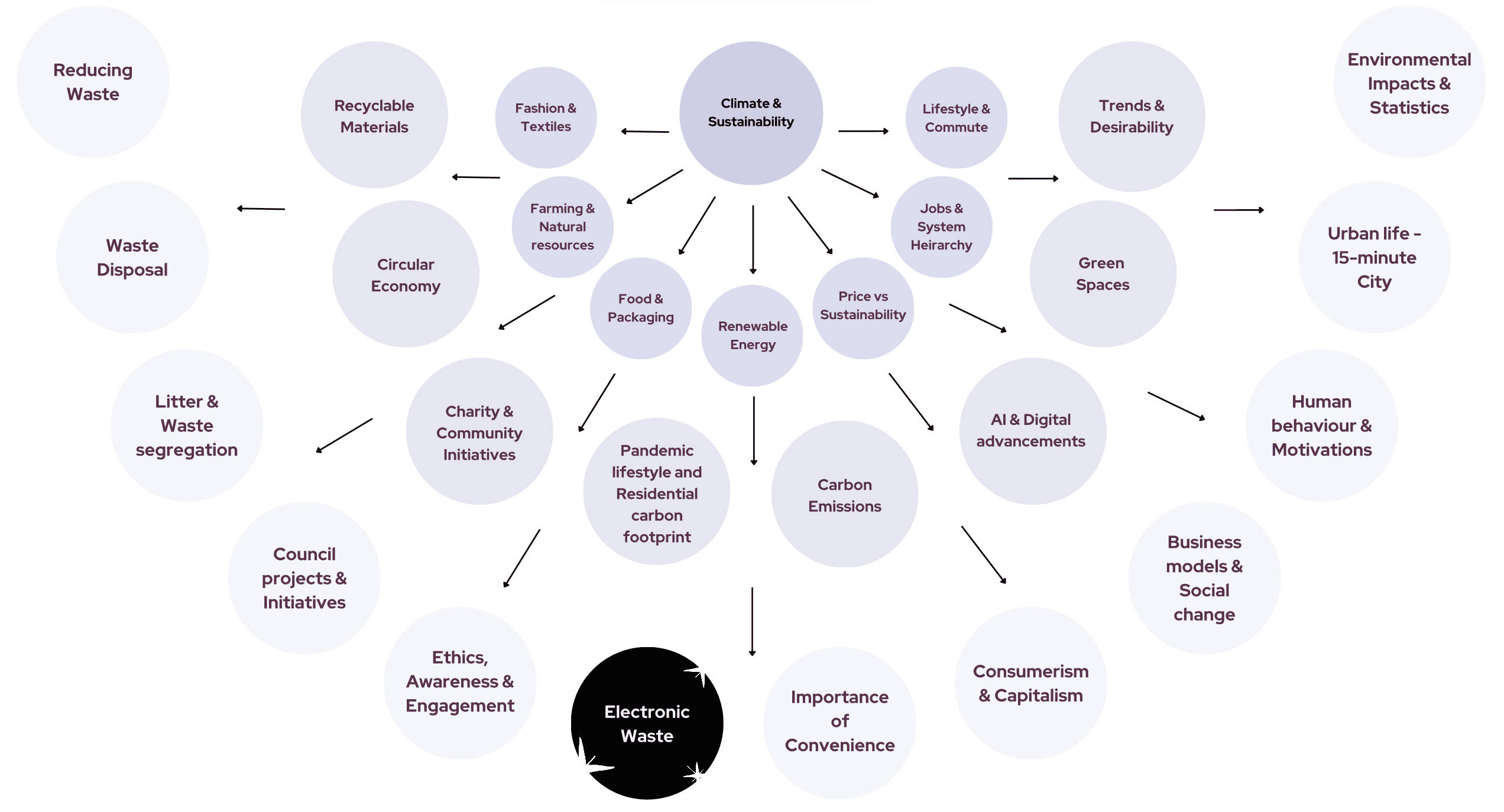 The project started with an extensive knowledge mapping around sustainability and climate change, where we finally focussed on E-waste for our research.